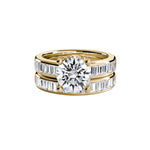 Designed with baguette side stones that gracefully complement the center stone, this ring strikes a balance between art deco elegance and bold femininity.