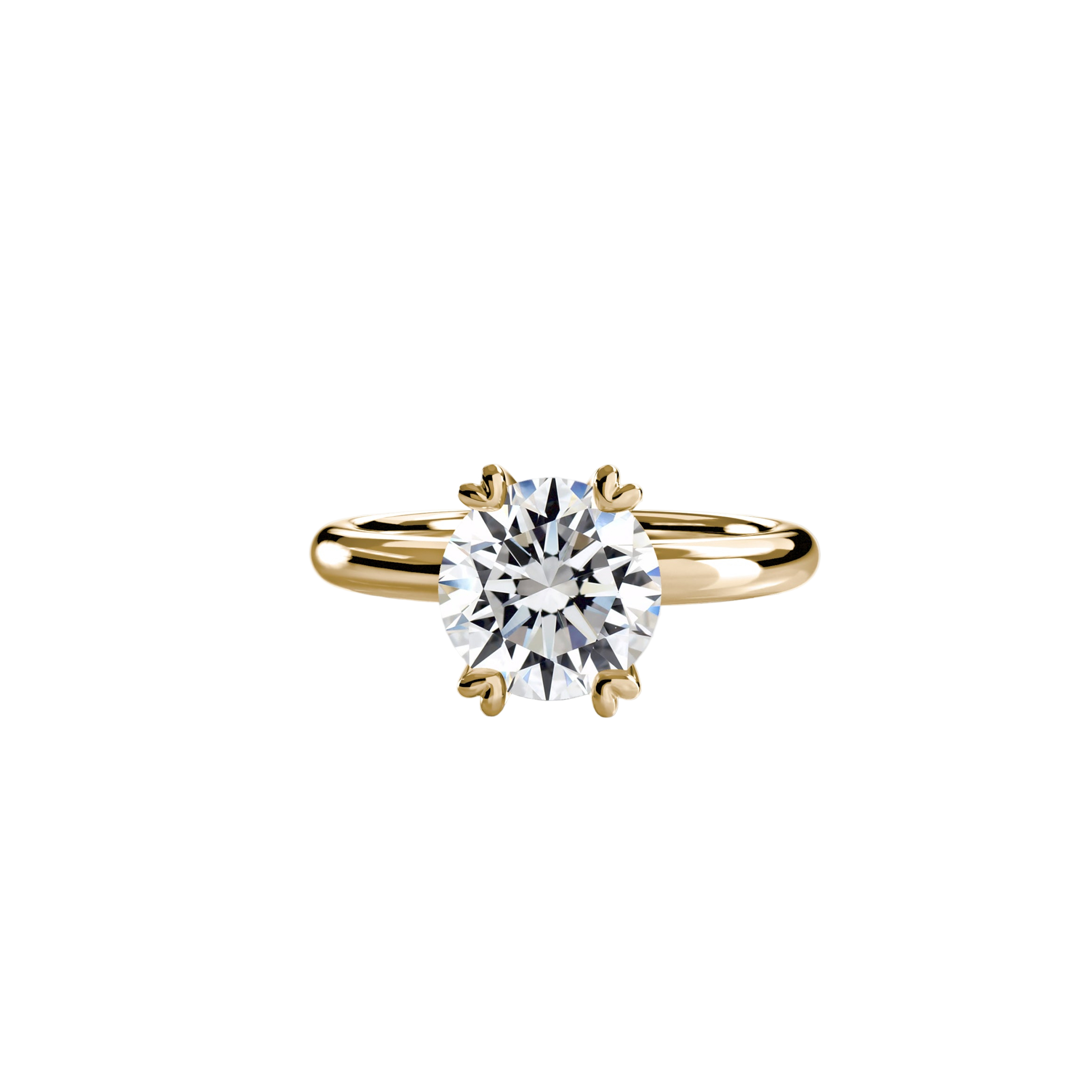 Thoughtfully refined, this solitaire ring features understated heart-shaped prongs that hold your diamond. A subtle gesture of love within an elegant, timeless silhouette.